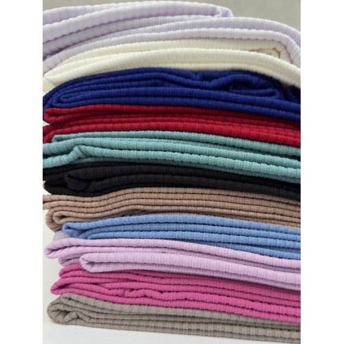 Склад: Склад може бути різним, але в тканині є відсоток еластану (спандексу), що забезпечує еластичність та повернення до форми.  Структура: Має виразний рельєф (рубчик) у вигляді смужок, який може бути як вузьким, так і більш об'ємним.  Еластичність: Добре тягнеться в одному напрямку (зазвичай по ширині), не сковуючи рухів і дозволяючи одягу ідеально облягати фігуру.  Відчуття: Дуже м'яка, приємна до тіла і комфортна у носінні.  Переваги: